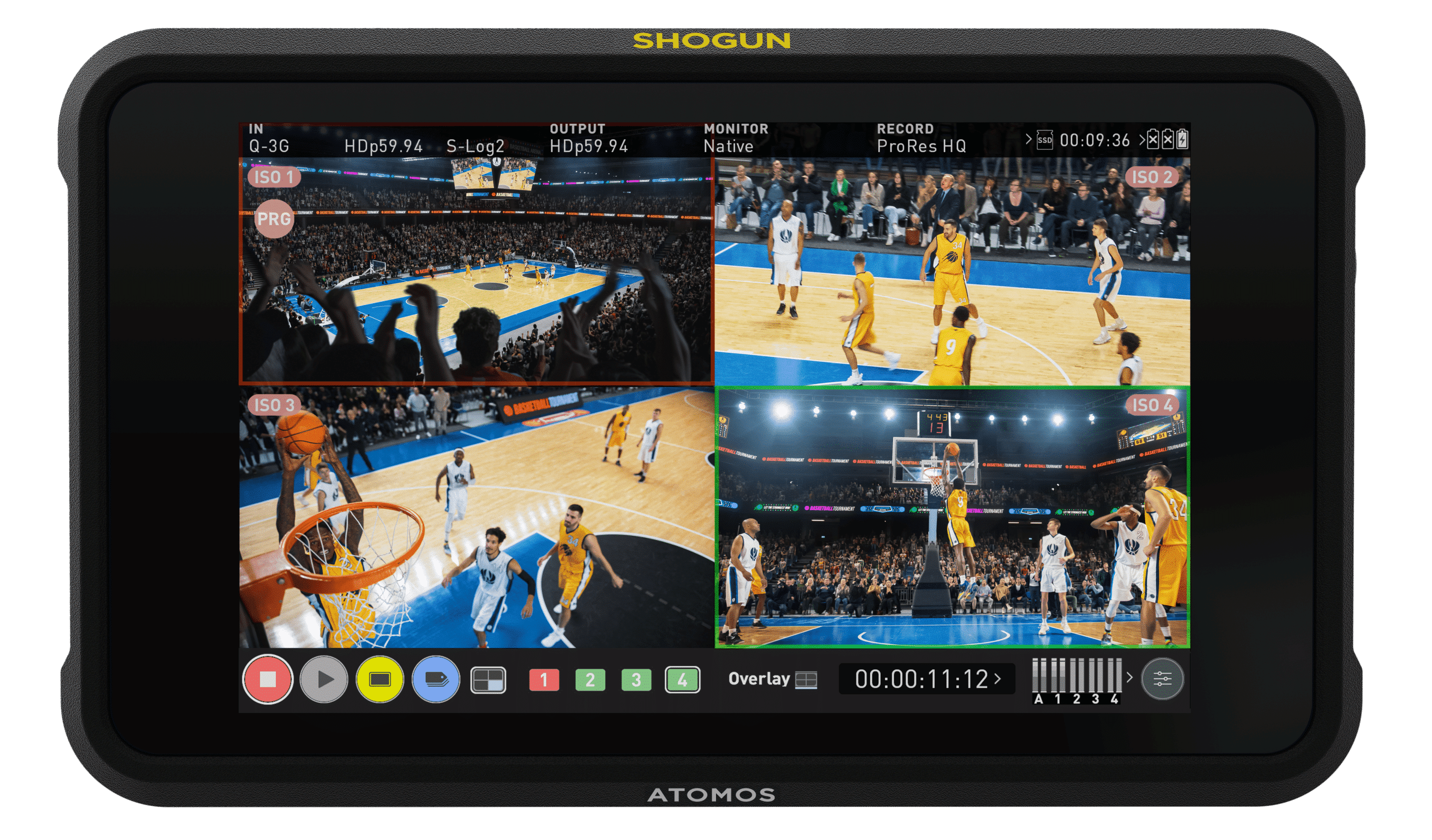 Take full advantage of 4 x SDI inputs and let Shogun Classic step into the role of a portable, quadview live switcher and recorder on your multi-camera shoots. Record up to four 1080p60 streams simultaneously as separate ISOs while cueing and switching in real-time with a simple touch of the screen.